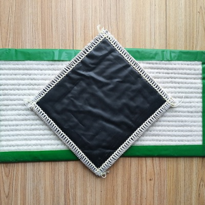 覆膜型钠基膨润土防水毯,顶层为高密度聚乙烯(HDPE)薄膜下层为无纺织物,防渗钠基膨润土底层为有纺织物。将防水效果良好的钠基膨润土,用特殊的针刺方法固定于高强度土工布之间然后在无纺织物上粘覆一层高密度聚乙烯(HDPE)薄膜。膨润土防水毯比普通的膨闰土防水毯具有更强的防水防渗能力。防水机理为膨润土粒子遇水膨胀,使其形成均匀的胶体系统,在两层土工布限制作用下,使膨润土从无序变为有序的膨胀,持续的吸水膨胀结果是让膨润土层自身达到密实,从而具有防水作用。